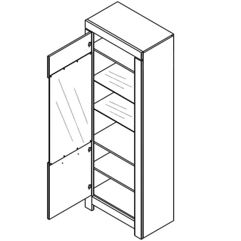 вітрина містить одне закрите відділення: за дверима зі вставкою з загартованого скла розташовано п’ять полиць, в тому числі дві скляні |