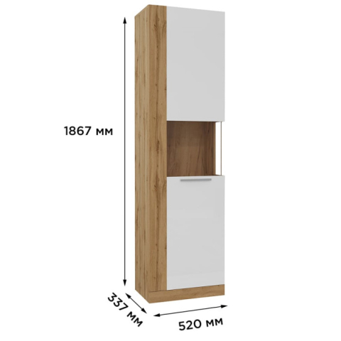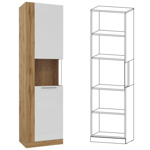 Вітрина висока 1Д Джерсі Сокме поєднує стиль і функціональність, створюючи витончений акцент в інтер'єрі вітальні і підкреслюючи її індивідуальність, атмосферу затишку і елегантності. Вітрина містить одне закрите відділення з фасадом із вставкою з прозорого загартованого скла і чотирма полицями всередині, що дозволяє зберігати все необхідне під рукою і одночасно надає легкість і елегантність оформленню кімнати. Колекція привертає увагу: лаконічними лініями, ретельно вивіреними пропорціями і комфортною ергономікою, роблячи меблі не тільки красивими, але і зручними в повсякденному використанні; ефектним дизайном з контрастом білих глянцевих поверхонь і деревної текстури; продуманою ергономікою модулів, що забезпечують зручне зберігання; довгастими ручками сріблястого кольору, що підкреслюють сучасний стиль; міцною основою, що сприяє максимальній стійкості; фірмовими комплектуючими, що підвищують надійність і зручність використання. Джерсі Сокме дозволить створити гармонійний інтер'єр, наповнений теплом, світлом і продуманим комфортом.