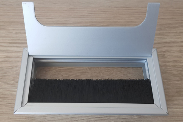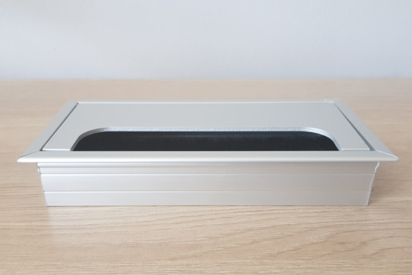 Сховайте хаос дротів — додайте стилю та порядку за допомогою заглушки 160×80 мм від Loft Design. Компактна, але надзвичайно корисна деталь створена для того, щоб ваш робочий або переговорний стіл виглядав акуратно та сучасно, навіть якщо за ним працює цілий офіс. Продумана конструкція дозволяє акуратно провести кабелі під стільницю — більше ніяких звисаючих шнурів і переплетених дротів. Особливо актуально, якщо ви об'єднуєте два столи або використовуєте кілька пристроїв на одному робочому місці. Просто встановіть заглушку в зоні найбільшого навантаження і забудьте про безлад. Прямокутний алюмінієвий корпус з відкидною кришкою приховує дроти всередині, а м'яка чорна щетина в зазорі дбайливо утримує кабелі на місці. Матова текстура і лаконічний дизайн підкреслюють сучасний стиль інтер'єру і легко поєднуються з меблями в дусі лофт. Естетика, функціональність і порядок — в одному елегантному рішенні.
