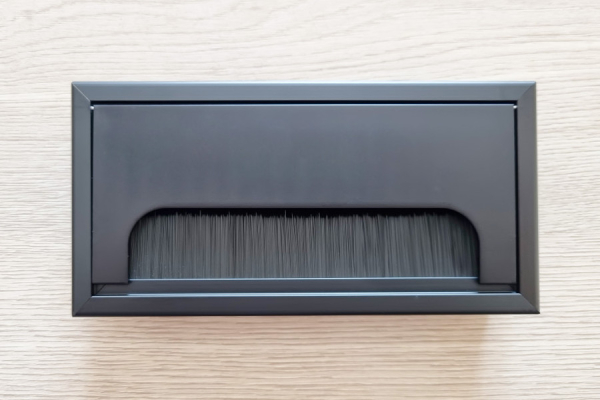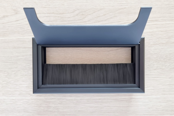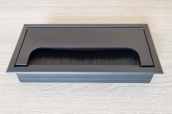 Заглушка для кабелю 160×80 мм від Loft Design — стильне і практичне рішення для сучасного робочого простору. Вона допомагає акуратно організувати дроти від комп'ютерів, зарядних пристроїв та іншої техніки, позбавляючи від нагромаджень і візуального шуму на столі. Ідеально підходить як для робочих столів, так і для переговорних зон, особливо якщо потрібно розмістити два столи впритул. Конструкція гранично лаконічна: прямокутний алюмінієвий корпус без дна, оснащений відкидною кришкою. Спеціальний прогумований зазор з чорною щетиною м'яко охоплює дроти, приховуючи їх з поля зору, але не заважаючи підключенню. Модель виконана з міцного алюмінію з матовим чорним покриттям — тактильно приємна, стримана і універсальна. Відмінне доповнення до інтер'єру в стилі лофт, мінімалізм або сучасна класика.