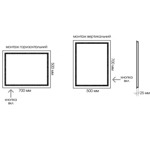 Характеристики Дзеркальна панель в ванну кімнату 50/70 квадрат Еджи SKLONOVA