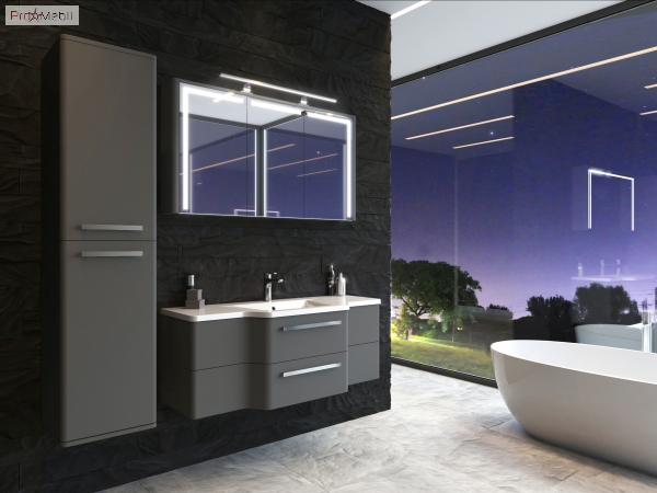 Дзеркальна шафа в ванну кімнату LvM-128 Levanto Botticelli відмінний спосіб збільшити корисний простір, не захаращуючи і навіть прикрашаючи його. У своїй конструкції дзеркальна шафа має три відділення, внутрішній простір яких, в свою чергу, розділено скляними полицями товщиною 5 мм, які регулюються по висоті. Дзеркальна шафа укомплектована LED-світильником 800 мм, а також вмонтованим в дзеркальне полотно LED-освітленням, розеткою 220V і вимикачем. Дзеркало виготовлено з вологостійкого полотна і призначене для експлуатації в приміщеннях з підвищеною вологістю. Корпус і фасадні частини виготовлені з МДФ товщиною 19 мм. Поверхня меблів оброблена всередині виробу – матовими емалями; зовні виробу – емалями з подальшим нанесенням еластичного декоративного покриття – «сірий тактус», яке на дотик нагадує каучук. Головною особливістю серії Levanto Боттічеллі є оригінальне матове покриття, яке створює ефект м'якості і затишку в приміщенні; плавні форми і округлість ліній надають дивовижне відчуття стилю; функціональне наповнення і неперевершений дизайн; підвісний монтаж - кріплення до стіни; якісна і надійна фурнітура: накладні самодовідні петлі, які забезпечують плавне і м'яке закривання. Меблі для ванної Levanto Botticelli - це сміливе дизайнерське рішення, справжнє втілення досконалості - стане вишуканим доповненням вашої ванної кімнати.