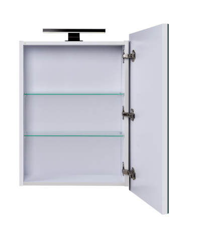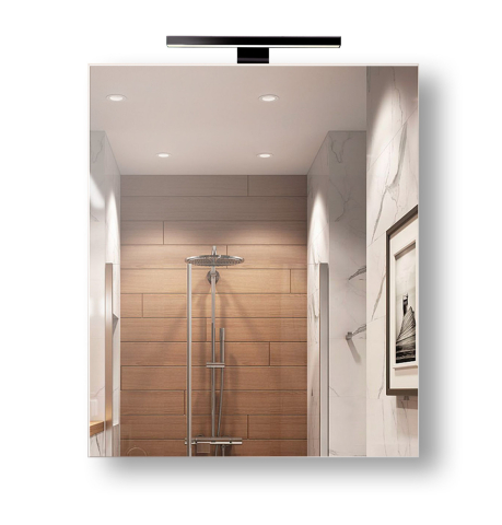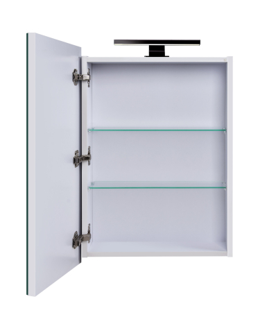 Дзеркальна шафа у ванну кімнату 54 Руна Мойдодир гармонійне поєднання стилю і функціональності, створене для сучасних інтер'єрів. Пропорції продумані таким чином, щоб шафа легко вписувалася в простір будь-якої ванної кімнати - від компактної міської до просторої домашньої. При цьому шафа зберігає достатню місткість, дозволяючи зручно зберігати всі необхідні дрібниці і підтримувати порядок. Дзеркало укомплектовано LED-світильником Black, який забезпечує яскраве та рівномірне підсвічування, створюючи комфортні умови для щоденного користування. Дзеркальне полотно від AGC товщиною 4 мм з срібною амальгамою дарує чітке і природне відображення, а дві скляні полиці всередині створюють зручний простір для аксесуарів, косметики та засобів догляду. Корпус виконаний з вологостійкого ламінованого ДСП товщиною 16 мм, що гарантує надійність і довговічність навіть в умовах підвищеної вологості. Підвісний монтаж надає конструкції легкість і акуратність, а можливість вибрати сторону відкривання дверцят робить шафу універсальною для будь-яких планувань. Петлі Linken System забезпечують м'яке і безшумне закривання, підкреслюючи комфорт використання. Білі матові боковини надають шафі витончений і лаконічний вигляд, який легко поєднується з іншими меблями і особливо гармонує з тумбами бренду MDD. Дзеркальна шафа Руна Мойдодир практичне рішення для організації простору, яке поєднує зручність, естетику і надійність.
