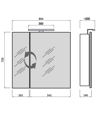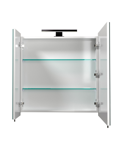 Дзеркальна шафа у ванну кімнату 80 Руна Мойдодир гармонійне поєднання стилю і функціональності, створене для сучасних інтер'єрів. Пропорції продумані таким чином, щоб шафа легко вписувалася в простір будь-якої ванної кімнати - від компактної міської до просторої домашньої. При цьому шафа зберігає достатню місткість, дозволяючи зручно зберігати всі необхідні дрібниці і підтримувати порядок. Дзеркало укомплектовано LED-світильником Black, який забезпечує яскраве та рівномірне підсвічування, створюючи комфортні умови для щоденного користування. Дзеркальне полотно від AGC товщиною 4 мм з срібною амальгамою дарує чітке і природне відображення, а дві скляні полиці всередині створюють зручний простір для аксесуарів, косметики та засобів догляду. Корпус виконаний з вологостійкого ламінованого ДСП товщиною 16 мм, що гарантує надійність і довговічність навіть в умовах підвищеної вологості. Підвісний монтаж надає конструкції легкість і акуратність, а можливість вибрати сторону відкривання дверцят робить шафу універсальною для будь-яких планувань. Петлі Linken System забезпечують м'яке і безшумне закривання, підкреслюючи комфорт використання. Білі матові боковини надають шафі витончений і лаконічний вигляд, який легко поєднується з іншими меблями і особливо гармонує з тумбами бренду MDD. Дзеркальна шафа Руна Мойдодир практичне рішення для організації простору, яке поєднує зручність, естетику і надійність.