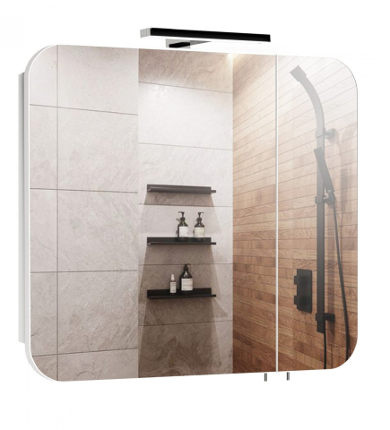 Опис Дзеркальна шафа в ванну кімнату ЗШ-80 зі світильником LED Сорренто Мойдодир
