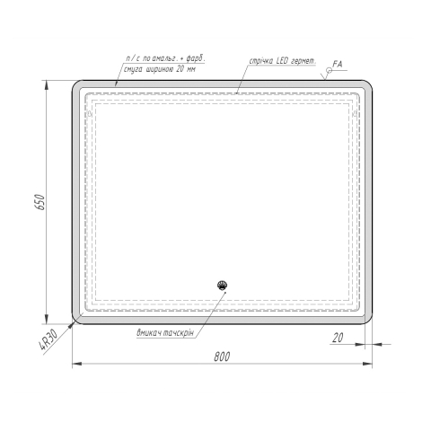 Характеристики Дзеркало у ванну кімнату Lite Image 80*65 Sanwerk