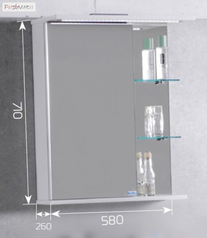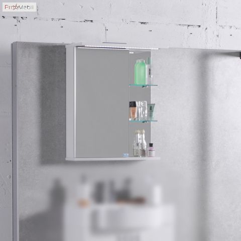 Ідеальна дзеркальна шафа MC-8 (ШЗ-8) Fancy Marble дуже актуальна для ванної кімнати, дзеркало зробить ванну кімнату яскравіше і збільшить внутрішній простір приміщення. У своїй конструкції дзеркальна шафа має одне закрите відділення, простір розділено скляними полицями і відкриті полиці. Дзеркальна шафа оснащена LED-освітленням, а також укомплектована кнопкою-вимикачем. Корпус і фасадні частини виготовлені з МДФ товщиною 16 мм, поверхня меблів покрита вологостійкою ПВХ-плівкою. Акуратна шафа виконана в класичному кольорі білий глянець, з можливістю виготовити в кольорі білий матовий і графіт матовий. Головною особливістю є вологостійке полотно, призначене для експлуатації в приміщеннях з підвищеною вологістю; стриманий і унікальний дизайн; динамічні лінії, прямокутні форми; відсутність ручок, система Push to Open; система «Soft close», яка забезпечує плавне і м'яке закривання. Fancy Marble - уособлення по-справжньому високої якості, витонченого дизайну і відмінною функціональності.