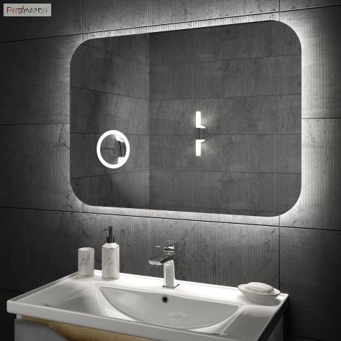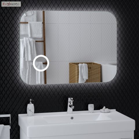 Дзеркало у ванну кімнату Ultra Oko 80*65 Sanwerk дозволить створити приємне і комфортне оточення. Завдяки дзеркальній поверхні, можна розширити простір і створити гарний декоративний ефект. Відмінною особливістю Ultra Oko, є дзеркальне полотно 5 мм Saint-Gobain (Франція); оброблені краї дзеркала єврокромка; наявність збільшеної лінзи Х3 з підсвічуванням, яка знаходиться в лівій частині дзеркала, оброблені великі радіуси кутів, а також додаткове підсвічування ззаду (backlit). Після включення даного дзеркала, за допомогою помаху рукою в його нижній частині, загоряється підсвічування по периметру дзеркала ззаду і ободок навколо збільшеної лінзи. Дизайн дзеркала універсальний, тому його можна комплектувати з тумбами з будь-якої колекції меблів для ванної Sanwerk.