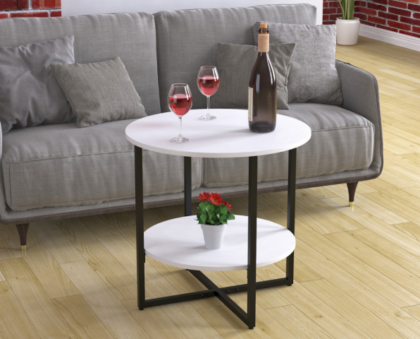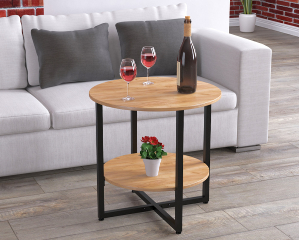 Журнальний столик D-60 Loft Design втілення сучасного стилю лофт в компактному і виразному форматі. Його легкий металевий каркас з порошковим чорним покриттям надає виробу індустріальну витонченість, а ретельно продумана конструкція забезпечує надійність і довговічність. Стільниця і нижня полиця з міцного ЛДСП товщиною 18 мм доступні в різноманітних кольорах, дозволяючи підібрати ідеальне поєднання для вашого інтер'єру — будь то затишна вітальня, стильний офіс або шикарний салон краси. Регульовані ніжки гарантують стійкість навіть на нерівних поверхнях і захистять вашу підлогу від небажаних пошкоджень. Столик — не просто функціональний предмет меблів, а справжній акцент, який підкреслить ваш смак і додасть інтер'єру особливого характеру. Він стане вашим надійним супутником для зберігання книг, прикрас і дрібниць, створюючи атмосферу затишку і гармонії. Дозвольте собі стильні деталі, які роблять простір живим і привабливим — вибирайте журнальний столик D-60 і насолоджуйтеся поєднанням практичності та естетики кожен день.