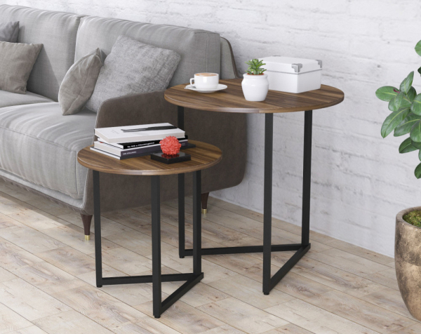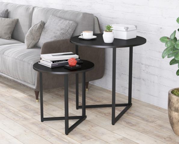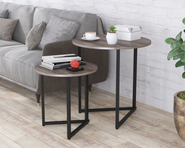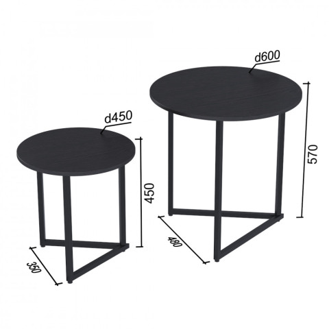 Журнальні столики Дельта Дуо Loft Design — ефектний дует, здатний перетворити будь-який простір на стильний і затишний куточок, наповнивши його атмосферою свободи і креативу. Лаконічний і водночас виразний дизайн поєднує в собі естетику лофту і сучасного мінімалізму. Столики можна використовувати разом, створюючи багатошарову композицію, або окремо — залежно від вашого настрою і потреб. А коли потрібно звільнити простір, їх легко зібрати один під іншим, заощадивши місце і зберігши гармонію в інтер'єрі. Каркас виконаний з міцних металевих труб перетином 20×20 мм і покритий чорною порошковою фарбою. Таке покриття не тільки підкреслює індустріальний характер виробів, але і захищає метал, надаючи йому довговічність і бездоганний зовнішній вигляд. Регульовані ніжки — турбота про вашу підлогу: вони надійно компенсують нерівності і запобігають подряпинам. Стільниці з високоякісного ЛДСП товщиною 18 мм вражають вишуканим деревним малюнком і доступні в різних відтінках, щоб ви могли підібрати ідеальний варіант під ваш інтер'єр. Діаметр більшого столу становить 48 см при висоті 57 см, меншого — 35 см і висоті 45 см. Журнальні столики Дельта Дуо — динамічне і елегантне рішення, яке вдихне життя у ваш інтер'єр і стане стильним акцентом, що приковує погляди.