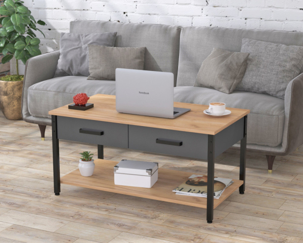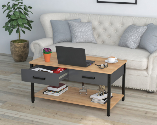 Журнальний столик L-6 Loft Design вишуканий акцент, який перетворює ваш інтер'єр в стильний і затишний простір. Сучасний дизайн столика підкреслює легкість і свободу, а його продумана функціональність робить кожну деталь важливою. Висувні ящики додають елемент несподіванки: тепер ваш журнальний столик стає ще й таємним сховищем для різних дрібниць, які завжди хочеться тримати під рукою, але не на виду. Полиця і стільниця виконані з ДСП з виразною дерев'яною текстурою — на вибір благородний венге луїзіана, теплий дуб крафт золотий, ефектний дуб палена або вишуканий горіх модена. Елегантний ящиковий блок в кольорі антрацит оснащений плавними і безшумними роликовими напрямними, завдяки яким відкривати і закривати ящики одне задоволення. Каркас з металевої труби 25×25 мм підкреслює легкість конструкції і надає столу стійкість. Регульовані ніжки не тільки захищають підлогове покриття від подряпин, але і дозволяють ідеально вирівняти стіл навіть на нерівній поверхні. Журнальний столик L-6 ідеально впишеться як в сучасну вітальню, так і в стильний офіс. Його верхня поверхня готова стати місцем для чашки ароматної кави, ноутбука або улюблених ласощів, а нижня полиця акуратно збере журнали, книги і каталоги. У ящики можна заховати все те, що потрібно тримати під рукою, але не хочеться виставляти на показ. L-6 справжня окраса простору, яка поєднує в собі легкість, елегантність і продуману функціональність.