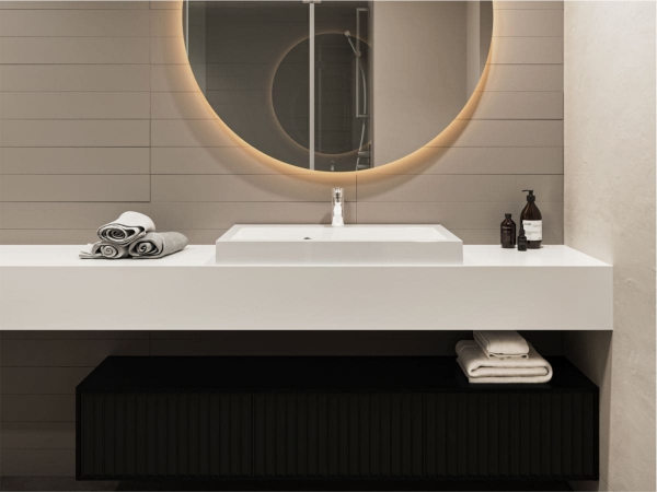 Для современного человека очень важен вопрос гигиенических процедур, являющихся залогом: крепкого здоровья; поддержания хорошего самочувствия; отличный внешний вид. И в этом случае грамотно укомплектовать зону для гигиенических процедур поможет качественная сантехника MIRAGGIO. Плоский умывальник Agness 750 Miraggio с прямоугольной чашей без крыла станет прекрасным дополнением ванной в стиле минимализм. Раковина имеет накладной способ монтажа и легко устанавливается на тумбу или полку в ванной комнате, что обеспечивает наличие под умывальником места, которое можно задействовать под систему хранения необходимых в ванной комнате вещей. На бортах умывальника можно разместить косметические средства. Отверстие под слив скрыто декоративной накладкой. Заводской стандарт модели подразумевает отсутствие перелива и имеет одно отверстие под смеситель по центру изделия. В комплекте поставляется сифон. Умывальник изготовлен из прочного, красивого и современного продукта – литого мрамора (искусственного камня) из Miramarble technology – 80% мраморной крошки и 20% полимерной смолы с примесями, наружная поверхность изделия покрыта антибактериальным гелем Gelcoat ISO NPG, который защищает изделие от бактерий и механических повреждений. На конечном этапе полируется специальной пастой для получения блестящей глянцевой поверхности. Литой мрамор отличается способностью поглощать звуки воды и принимать температуру окружающей среды, благодаря чему умывальник бесшумный, удобный и надежный. Умывальник в ванной комнате может быть не просто функциональным предметом, но и стильным аксессуаром. Эксклюзивная сантехника MIRAGGIO – поражает своим непревзойденным дизайном, передовыми технологиями и безупречным качеством, где каждый элемент создан для того, чтобы обеспечить комфорт, эстетику и незабываемый опыт использования.