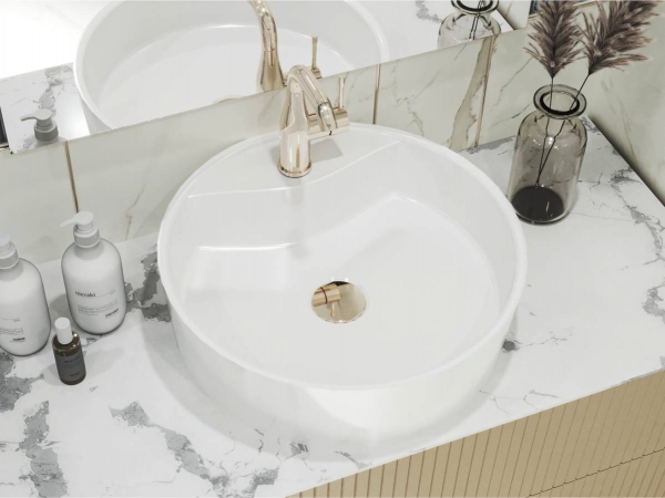 Умывальник COUNTRY MIRAGGIO – изящный и функциональный дополнит дизайн ванной комнаты в классическом и современном стиле. Круглая раковина-чаша с отверстием под смеситель имеет накладной тип монтажа. Заводской стандарт модели подразумевает отсутствие перелива и имеет одно отверстие под смеситель по центру изделия. Умывальник изготовлен из прочного, красивого и современного продукта – литого мрамора (искусственного камня) из Miramarble technology – 80% мраморной крошки и 20% полимерной смолы с примесями, наружная поверхность изделия покрыта антибактериальным гелем Gelcoat ISO NPG, который защищает изделие от бактерий и механических повреждений. На конечном этапе полируется специальной пастой для получения блестящей глянцевой поверхности. Литой мрамор отличается способностью поглощать звуки воды и принимать температуру окружающей среды, благодаря чему умывальник бесшумный, удобный и надежный. Умывальник в ванной комнате может быть не просто функциональным предметом, но и стильным аксессуаром. Эксклюзивная сантехника MIRAGGIO – поражает своим непревзойденным дизайном, передовыми технологиями и безупречным качеством, где каждый элемент создан для того, чтобы обеспечить комфорт, эстетику и незабываемый опыт использования.