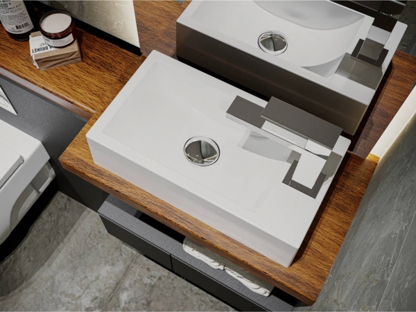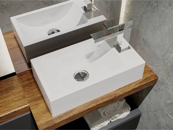 Умывальник FARO MIRAGGIO прямоугольной формы функциональный аксессуар для небольшой ванной комнаты в классическом, современном или минимализме стиле. Оптимальное решение для организации пространства благодаря возможности установить смеситель. Умывальник имеет накладной тип монтажа. Заводской стандарт модели подразумевает отсутствие перелива и имеет отверстие под смеситель. Умывальник изготовлен из прочного, красивого и современного продукта – литого мрамора (искусственного камня) из Miramarble technology – 80% мраморной крошки и 20% полимерной смолы с примесями, наружная поверхность изделия покрыта антибактериальным гелем Gelcoat ISO NPG, который защищает изделие от бактерий и механических повреждений. На конечном этапе полируется специальной пастой для получения блестящей глянцевой поверхности. Литой мрамор отличается способностью поглощать звуки воды и принимать температуру окружающей среды, благодаря чему умывальник бесшумный, удобный и надежный. Умывальник в ванной комнате может быть не просто функциональным предметом, но и стильным аксессуаром. Эксклюзивная сантехника MIRAGGIO – поражает своим непревзойденным дизайном, передовыми технологиями и безупречным качеством, где каждый элемент создан для того, чтобы обеспечить комфорт, эстетику и незабываемый опыт использования.