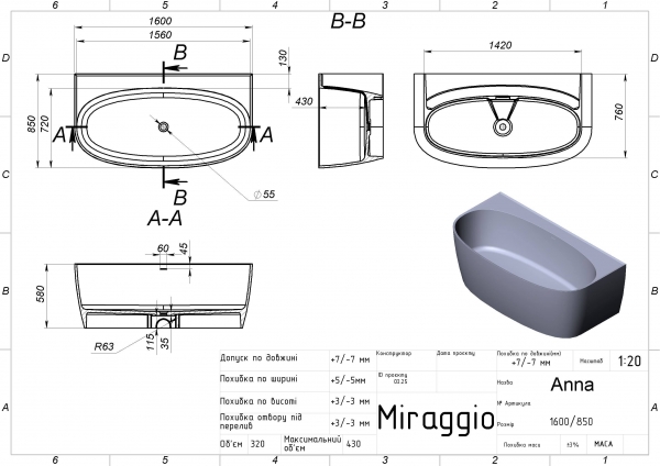 В интернет-магазине ProMebli.ua мы предлагаем купить ванну Anna Miraggio со склада производителя с доставкой в кратчайшие сроки по всей Украине, Киев, Днепр. Оплата за наличный и безналичный расчет, в кредит, рассрочку или оплату частями от ПриватБанк.