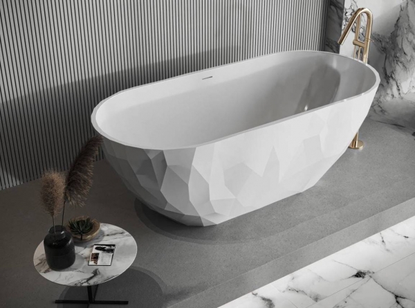 Изысканная и изящная ванна SAPFIRE MIRAGGIO с выразительными гранями на поверхности никого не оставит равнодушным и станет драгоценным украшением вашей ванной комнаты. Ванна изготовлена из прочного, красивого и современного продукта – литого мрамора (искусственного камня) с Miramarble technology – 80% мраморной крошки и 20% полимерной смолы с примесями, наружная поверхность изделия покрыта антибактериальным гелем Gelcoat ISO NPG, который защищает изделие от бактерий и механических повреждений. На конечном этапе ванна полируется специальной пастой для получения блестящей глянцевой поверхности. Sapfire Miraggio ванна с интересной и непревзойденной поверхностью, которая имеет огранки как у драгоценного камня, создана для того, чтобы делать каждый ваш вечер роскошным, выпускается в белом цвете с глянцевой поверхностью и с возможностью окрашивания снаружи в любом цвете по палитре RAL. Ванна – это не просто сантехника, это проявление любви к себе, чтобы действительно насладиться жизнью и уделить время на себя, потому что прием ванны – это волшебный обряд. MIRAGGIO – комфорт и удобство в каждой детали.