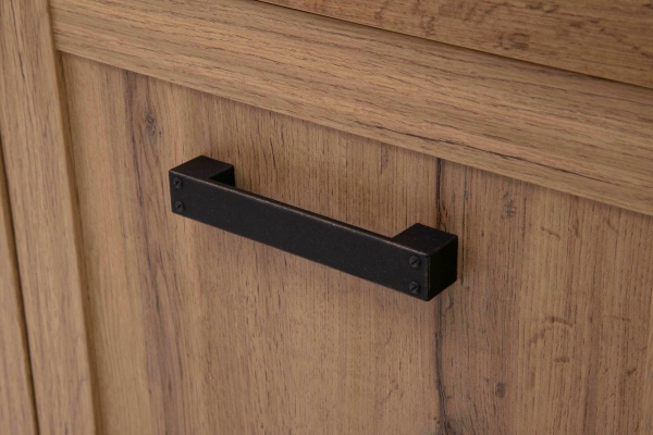 Витрина 1W3S Mortiz Mebel Bos элегантная и атмосферная прекрасно дополнит интерьер гостиной и столовой. Витрина имеет три выдвижных ящика, одно закрытое отделение и две открытые ниши. В левом отделении фасад со вставкой из прозрачного закаленного стекла и тремя полочки внутри, которые дополнительно можно укомплектовать подсветкой. Корпус и фасады изготовлены из качественного ламинированного ДСП толщиной 16 мм с декоративными массивными планка из МДФ толщиной 16 мм и 19 мм на фасадной части, в природной эстетике с трещинами и многочисленными характерными признаками древесины, в цвете дуб вотан. Главными особенностями являются классические формы; грубоватая отделка с естественной красотой древесного декора; природная цветовая палитра; пластиковая декоративная фурнитура в виде скоб, на боках мебели; широкие боковые планками, которые плавно перетекают в устойчивые ножки; черные массивные пластиковые ручки с эффектом состаривания; фирменные комплектующие. Мебель Мортиз Мебель Бос - сочетание традиций и современности, которые создадут невероятное ощущение уюта и особую атмосферу месту, куда захочется возвращаться после рабочего дня.