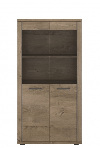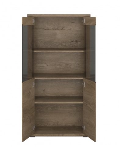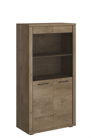 витрина содержит одно закрытое отделение с двумя частично остекленными дверями, с тремя полками внутри |