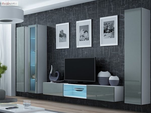 Купить витрину навесную 180 Vigo белый матовый/серый глянец Cama недорого в Украине, Киеве, Днепре