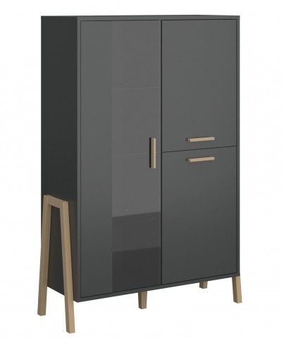 Витрина низкая 1W2D Бель антрацит ВМВ представляет собой удивительное сочетание изысканного вкуса, стиля и элегантности, которая обязательно покорит даже самых взыскательных клиентов и легко создаст модное и функциональное пространство в гостиной. Витрина содержит три закрытых отделения: за левой дверью со вставкой из тонированного стекла расположены три стеклянных полки, в других отделениях находится по одной полке. Мебель привлекает внимание своим неординарным дизайном и интересной формой; необычной ассиметричной композицией; классическим антрацитовым оттенком; удлиненными удобными ручками и высокими выступающими по бокам ножками, изготовленными из натурального дерева; фирменными комплектующими. Коллекция Belle VMV порадует всех любителей инновационных идей, а также современных, оригинальных и элегантных интерьеров, тех, кто ценит роскошь и комфорт в своем доме.