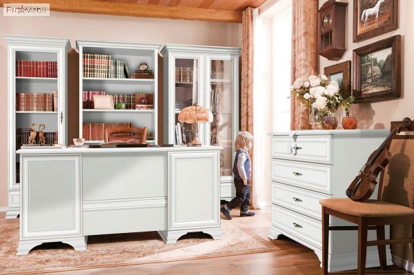 Витрина REG1W1S Кентуки ВМК (БРВ) выполнена в лучших традициях классики, с первого взгляда покоряет своей грациозностью и изяществом и прекрасно дополнит интерьер гостиной, столовой, домашнего кабинета и офиса. Витрина содержит один выдвижной ящик и одно закрытое отделение, где за дверцей со вставкой из прозрачного стекла расположены три полки. Дверь устанавливается как с правой, так и с левой стороны. Характерными особенностями коллекции является изящный дизайн; патина, нанесенная на фасады, делает мебель объемней и создает эффект старины; витиеватые металлические ручки бронзового цвета; декоративные планки; резные карнизы и ножки являются бесспорным украшением коллекции; а фирменные комплектующие: петли и шариковые направляющие полного выдвижения, гарантируют надежность и долговечность изделиям. Коллекция Кентуки ВМК (БРВ) располагает к себе, излучая особую легкость, очарование, естественность и изящность и отлично подойдет любителям уютных и теплых комнат.