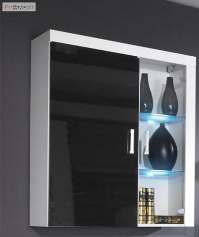 Витрина навесная reg 4 Samba черная Cama - отличный предмет для обустройства современной гостиной. Витрина Самба Cama крепится на стену, что позволяет существенно сэкономить окружающее пространство. Витрина состоит из двух отделений: одно побольше – с глухой дверцей, второе поменьше – со стеклянной дверцей, внутри расположены две стеклянные полки, которые могут быть дополнительно укомплектованы цветной LED-подсветкой (белой, голубой, красной или зеленой) или цветной RGB-подсветкой (16 цветов) с пультом управления, с помощью которого можно менять цвета, в зависимости от Ваших предпочтений на данный момент. Корпус выполнен из ДСП высокого качества "белого матового " цвета. Фасады выполнены из МДФ в цвете "черного глянца". Характерными особенностями мебели Самба Cama являются неповторимый дизайн, выполненный в стиле минимализма и конструктивизма, стильные и удобные продолговатые пластиковые ручки, надежная и практичная фурнитура от немецкого производителя Hettich обеспечивающая максимально комфортное использование, высокопрочное закаленное стекло толщиной 8 мм, цветная LED-подсветка придающая особую атмосферу и настроение всей композиции. Широкий ассортимент мебели Samba Cama позволяет создать уникальный, стильный и современный интерьер гостиной.