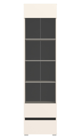 витрина содержит один выдвижной ящик и одно закрытое отделение, где за дверью со вставкой из прозрачного стекла расположены полки |