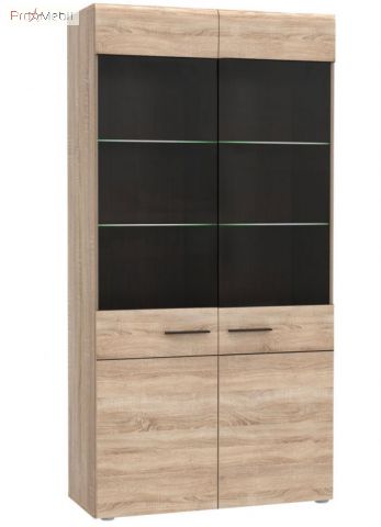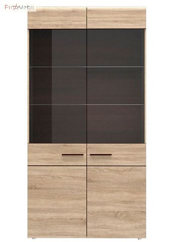 Витрина высокая 2W из коллекции модульной мебели Соло украинской фабрики VMV. Широкая витрина имеет две дверки, за которыми полочки. Прозрачное стекло и полочки из закаленного стекла выгодно подчеркнут содержимое витрины и придадут интерьеру гостиной более изысканный вид. Главной особенностью являются теплый цвет, простые геометрический формы, закругленные края и декоративные вставки в цвете венге, разделяющие фасад на отдельные блоки. Фасад дверок украшают длинные прямоугольные ручки.