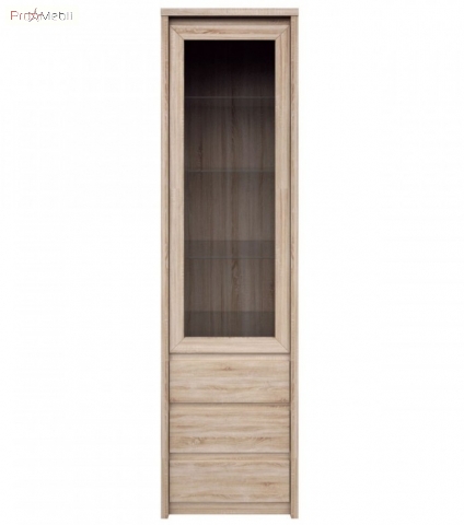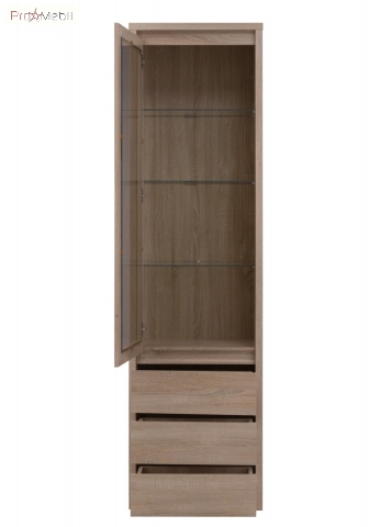 Витрина высокая WIT 1W3S Нортон ВМВ сдержанная с ненавязчивым дизайном предназначена для обустройства изысканной гостиной или столовой. Витрина имеет три выдвижных ящика и одно закрытое отделение со вставкой из прозрачного стекла с тремя стеклянными полочками внутри, где прекрасно можно хранить или демонстрировать различные предметы или ценные вещи. Корпус изготавливается из высококачественного ламинированного ДСП, фасады - из высококачественного ламинированного ДСП с элементами МДФ в теплом оттенке «дуб сонома», с выразительным природным орнаментом, создающим впечатление цельного массива дерева. Мебель Norton VMV гармонично дополнит любой современный интерьер для благоприятной обстановки и максимального удобства.