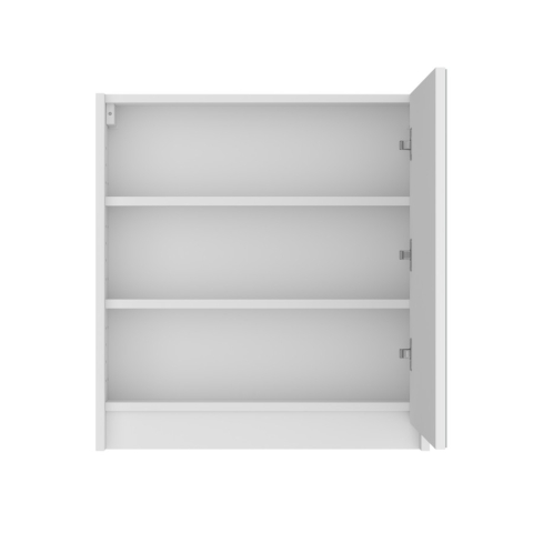 шкаф имеет одно отделение за одной дверцей, пространство за которой разделено двумя полками из ДСП толщиной 16 мм |