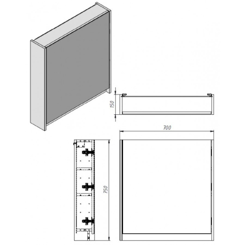 Технические характеристики Зеркальный шкаф в ванную комнату EsMC-70 Ester Ювента