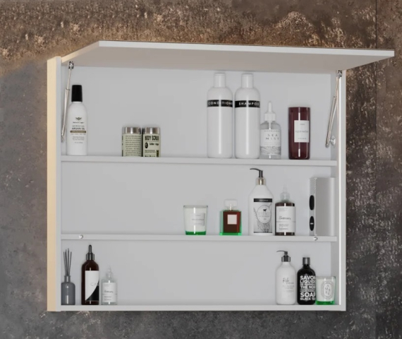 Зеркальный шкаф в ванную комнату QnMC-65 Queen Ювента - изысканное и практичное решение, которое гармонично сочетает в себе современный дизайн и функциональность, добавляет удобное место для хранения и становится стильным акцентом в интерьере. Конструкция шкафа продумана до мелочей: одна открытая полка позволяет держать под рукой самые необходимые мелочи, а за дверцей, которая открывается вверх, скрывается аккуратное пространство с двумя полками из ламинированного ДСП. Здесь удобно хранить косметику, средства для ухода и другие аксессуары, поддерживая порядок и чистоту в помещении. Две боковые LED-подсветки мягко и равномерно освещают зеркало, создавая приятное, расслабляющее свечение. Внутри шкафа предусмотрены розетка и выключатель, что делает его функциональным и максимально удобным в повседневном использовании. Корпус и фасад выполнены из прочного ламинированного ДСП толщиной 16 мм, дополненного зеркальным полотном, в безупречном белоснежном оттенке, наполняя интерьер свежестью, светом и визуальной легкостью, а минималистичное решение без традиционных ручек - роль которых выполняет нижний торец фасада - подчеркивает современный стиль изделия. Зеркальный шкаф Queen Ювента позволит Вам оформить интерьер ванной так, как Вы давно мечтали.