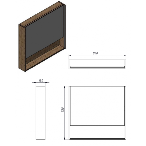 Технические характеристики Зеркальный шкаф в ванную комнату QnMC-80 дуб вотан Queen Ювента