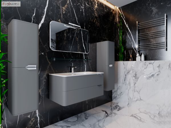 Зеркальный шкаф в ванную комнату VltMC-100 Velluto Botticelli отличный способ увеличить полезное пространство, не загромождая и даже украшая его. Универсальный шкаф имеет одно отделение, внутреннее пространство разделено стеклянной полкой. Главной особенностью является закругленные края, LED-светильником c сенсорным выключателем. Зеркало изготовлено из влагостойкого полотна и предназначено для эксплуатации в помещении с повышенной влажностью. Вмонтировано два регулируемых навеса. Корпус и фасадные части изготовлены из МДФ толщиной 16 мм. Поверхность мебели обработана внутри изделия – матовыми эмалями (цвет типа «Титан»); снаружи изделия – эмалями с последующим нанесением эластичного декоративного покрытия – «серый тактус», которое на ощупь напоминает каучук. Главной особенностью серии Веллюто Ботичелли являются оригинальное покрытие, которое создает эффект мягкости и уюта в помещении; плавные формы и округленность линий придают изумительное чувство стиля; функциональное наполнение и непревзойденный дизайн; алюминиевые ручки с напылением «хром». Мебель для ванной Velluto Botticelli – это гармония стиля, красота, эргономика, функциональность, надёжность и долговечность, удачный интерьер для ванной комнаты, который завораживает изумительной мягкостью.