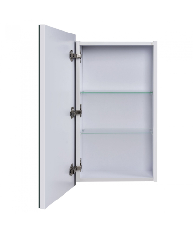 Зеркальный шкаф в ванную комнату 41 Руна Мойдодыр гармоничное сочетание стиля и функциональности, созданное для современных интерьеров. Пропорции продуманы таким образом, чтобы шкаф легко вписывался в пространство любой ванной комнаты - от компактной городской до просторной домашней. При этом шкаф сохраняет достаточную вместимость, позволяя удобно хранить все необходимые мелочи и поддерживать порядок. Зеркальное полотно от AGC толщиной 4 мм с серебряной амальгамой дарит четкое и естественное отражение, а две стеклянные полки внутри создают удобное пространство для аксессуаров, косметики и средств ухода. Корпус выполнен из влагостойкого ламинированного ДСП толщиной 16 мм, что гарантирует надежность и долговечность даже в условиях повышенной влажности. Подвесной монтаж придает конструкции легкость и аккуратность, а возможность выбрать сторону открывания дверцы делает шкаф универсальным для любых планировок. Петли Linken System обеспечивают мягкое и бесшумное закрывание, подчеркивая комфорт использования. Белые матовые боковины придают шкафу изящный и лаконичный вид, который легко сочетается с другой мебелью и особенно гармонирует с тумбами бренда MDD. Зеркальный шкаф Руна Мойдодыр практичное решение для организации пространства, которое объединяет удобство, эстетику и надежность.