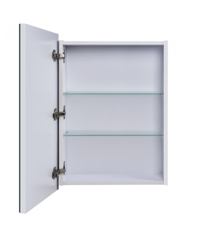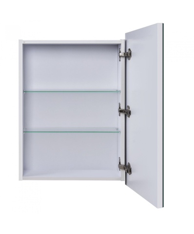 Зеркальный шкаф в ванную комнату 54 Руна Мойдодыр гармоничное сочетание стиля и функциональности, созданное для современных интерьеров. Пропорции продуманы таким образом, чтобы шкаф легко вписывался в пространство любой ванной комнаты - от компактной городской до просторной домашней. При этом шкаф сохраняет достаточную вместимость, позволяя удобно хранить все необходимые мелочи и поддерживать порядок. Зеркальное полотно от AGC толщиной 4 мм с серебряной амальгамой дарит четкое и естественное отражение, а две стеклянные полки внутри создают удобное пространство для аксессуаров, косметики и средств ухода. Корпус выполнен из влагостойкого ламинированного ДСП толщиной 16 мм, что гарантирует надежность и долговечность даже в условиях повышенной влажности. Подвесной монтаж придает конструкции легкость и аккуратность, а возможность выбрать сторону открывания дверцы делает шкаф универсальным для любых планировок. Петли Linken System обеспечивают мягкое и бесшумное закрывание, подчеркивая комфорт использования. Белые матовые боковины придают шкафу изящный и лаконичный вид, который легко сочетается с другой мебелью и особенно гармонирует с тумбами бренда MDD. Зеркальный шкаф Руна Мойдодыр практичное решение для организации пространства, которое объединяет удобство, эстетику и надежность.