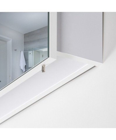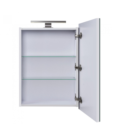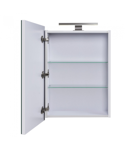 Зеркальный шкаф в ванную комнату 54 Руна Мойдодыр гармоничное сочетание стиля и функциональности, созданное для современных интерьеров. Пропорции продуманы таким образом, чтобы шкаф легко вписывался в пространство любой ванной комнаты - от компактной городской до просторной домашней. При этом шкаф сохраняет достаточную вместимость, позволяя удобно хранить все необходимые мелочи и поддерживать порядок. Зеркало укомплектовано LED-светильником, который обеспечивает яркую и равномерную подсветку, создавая комфортные условия для ежедневного использования. Зеркальное полотно от AGC толщиной 4 мм с серебряной амальгамой дарит четкое и естественное отражение, а две стеклянные полки внутри создают удобное пространство для аксессуаров, косметики и средств ухода. Корпус выполнен из влагостойкого ламинированного ДСП толщиной 16 мм, что гарантирует надежность и долговечность даже в условиях повышенной влажности. Подвесной монтаж придает конструкции легкость и аккуратность, а возможность выбрать сторону открывания дверцы делает шкаф универсальным для любых планировок. Петли Linken System обеспечивают мягкое и бесшумное закрывание, подчеркивая комфорт использования. Белые матовые боковины придают шкафу изящный и лаконичный вид, который легко сочетается с другой мебелью и особенно гармонирует с тумбами бренда MDD. Зеркальный шкаф Руна Мойдодыр практичное решение для организации пространства, которое объединяет удобство, эстетику и надежность.
