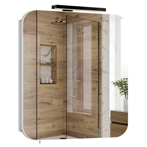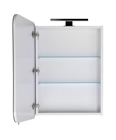 Зеркальный шкаф в ванную комнату ЗШ-60 Сорренто Мойдодыр очень актуален для ванной комнаты, зеркало сделают ванную комнату ярче и увеличит внутреннее пространство помещения. В своей конструкции шкаф имеет одно закрытое отделение, внутреннее пространство разделено стеклянными полками. Зеркало укомплектовано LED-светильником, который обеспечивает яркую и равномерную подсветку, создавая комфортные условия для ежедневного использования. Зеркало изготовлено из зеркального полотна AGC на основе серебряной амальгамы и предназначено для эксплуатации в помещениях с повышенной влажностью. Корпус изготовлен из ДСП Kronospan толщиной 16 мм, а фасадные части изготовлены из МДФ Kronospan толщиной 16 мм. Поверхности покрыты одним слоем грунта, тремя слоями влагостойкой белой глянцевой краски ультрафиолетового отверждения Iris (Испания). Характерными особенностями мебели Сорренто Мойдодыр являются комфорт и эргономичность; минимальное декоративное оформление; мягкие и плавные, округленные формы фасадов; фирменные комплектующие, которые обеспечивают плавное и мягкое закрывание. Мебель Сорренто Мойдодыр - привлекательное решение, которое наполнит ванную комнату комфортной и эргономичной мебелью!