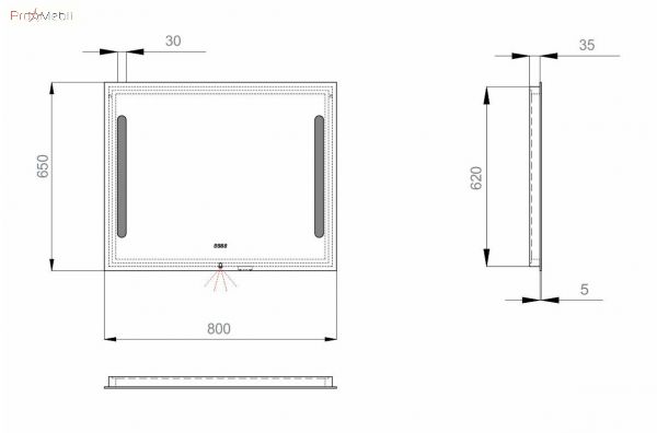 Зеркало в ванную комнату Lava Stella 80*65 Sanwerk позволит создать приятную и комфортную обстановку. Благодаря зеркальным поверхностям, можно расширить пространство и создать красивый декоративный эффект. Зеркало Lava Stella характеризуется: зеркальным полотном 5 мм Saint-Gobain (Франция); обработанными краями зеркала - еврокромкой; подсветкой зеркала в виде двух стильных вертикальных закругленных полос 12 Вт; встроенным сенсором включения с помощью взмаха рукой; LED часами стандарта IP44 с подсветкой голубого цвета, которые находится в центральной части зеркала. После включения данного зеркала, с помощью взмаха рукой в его нижней части, загорается подсветка (полосы). LED часы подсвечены всегда. Дизайн зеркала универсальный, поэтому его можно комплектовать с тумбами из любой коллекции мебели для ванной Sanwerk.