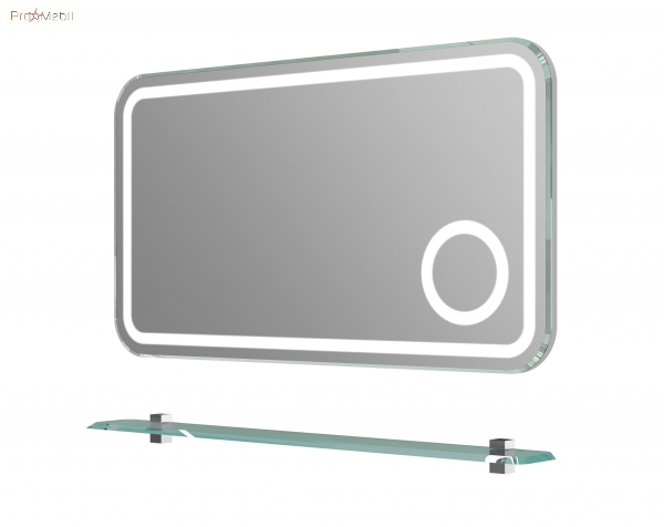 зеркальная панель укомплектована стеклянной полочкой толщиной 8 мм с хромированными держателями и круглым увеличительным зеркалом с подсветкой |