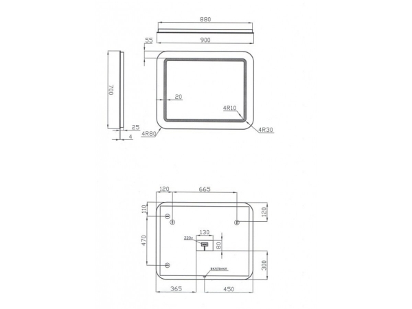 Технические характеристики Зеркало в ванную комнату ArM-90 Large Arizona Ювента